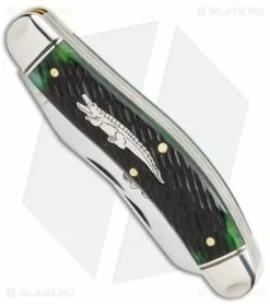 Great Eastern Cutlery GEC #88 Tidioute Bayou Trapper Knife Swamp Green Jigged Bone Gator (3″ Satin)