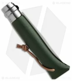 Opinel No 7 Trekking Stainless Steel Knife Green + Leather (3.25″ Satin)