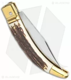 This Genuine European Stag from AGA Campolin comes in the Diana Leverlock style with a stag horn handle and a polished stainless steel blade. AGA Campolin offers some of the finest traditional hunting knives on the market, with a variety of collectible styles to choose from. This Diana model has a stag horn handle with brass bolsters, lever lock, pins, and liner, which add a classic touch to the overall design. The blade comes in a clip point style with a plain edge and a polished finish. Add a piece of Italian history to your collection with the AGA Campolin Diana Leverlock knife.