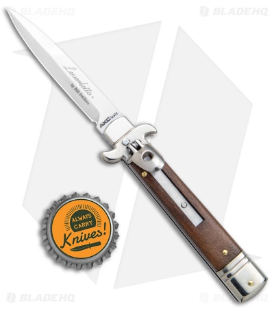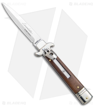 This 7.75″ Italian Stiletto from AKC comes in the Leverletto style with a Cocobolo wood handle and a bayonet blade. AKC specializes in collectible Italian stilettos made with traditional knife-making techniques. The blade comes in a bayonet style with a plain edge and a satin finish. Add classic Italian style to your collection with the AKC 7.75″ Leverletto stiletto.