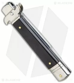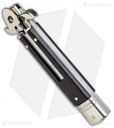 This 7.75″ Italian Stiletto from AKC comes in the Leverletto style with an Ebony handle and a bayonet blade. AKC specializes in collectible Italian stilettos made with traditional knife-making techniques. The blade comes in a bayonet style with a plain edge and a satin finish. Add classic Italian style to your collection with the AKC 7.75″ Leverletto stiletto.
