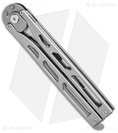 The Kinetic-Tool is truly a one-of-a-kind multi-tool from Artisan Cutlery. Breaking the mold of what a butterfly knife is supposed to be, they incorporated an automatic push-button mechanism as well. The dull trainer blade has a pry bar tip, bottle opener, hex wrench, and a 3″ ruler. Includes a titanium latch for locking the handle when the blade is open or closed.