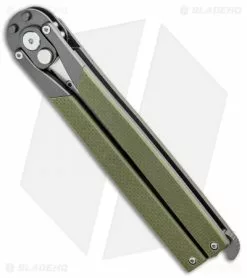This Kinetic-Tool model is outfitted with a utility razor tool blade and green G-10 handle scales. The blade has a slot cut out to accommodate a standard utility razor blade.
