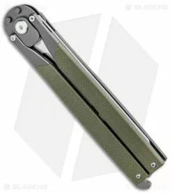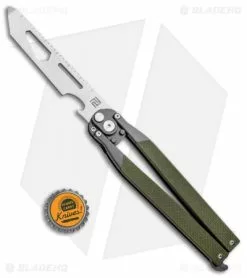This model of the Artisan Cutlery Kinetic-Tool sports an OD green G-10 handle scale with a satin finished dull blade.