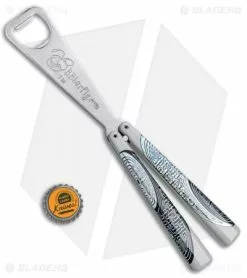 This BB Barfly model has a “Ying Yang Maze” handle and a satin finished bottle opener blade.