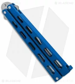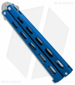 The Bear & Son 114 features a tough blue epoxy coating over the handles. It offers a skeletonized design to reduce weight for smooth flipping action. The stainless steel blades are satin finished with a plain edge and a dull trainer blade. Single tang pin construction provides an excellent flipping platform. The Bear & Son 114BL is a nice mid-range butterfly knife with made in the USA quality!
