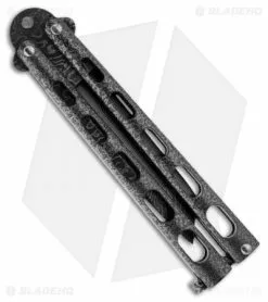 Bear & Sons Knives present the 5″ Silver Vein Butterfly Knife with a Damascus blade with a single tang pin. This knife features a tough silver vein epoxy powder coated handle; textured silver paint over a black base. The handles feature a skeletonized design to reduce weight. This is a great priced butterfly knife made right here in the USA.