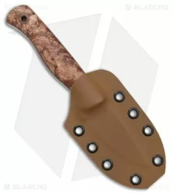 - Spalted burl wood handle scales covering skeletonized full-thickness tang.