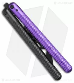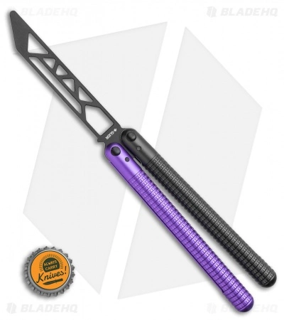 This SAHARA balisong trainer features a black blade and black and purple handles.
