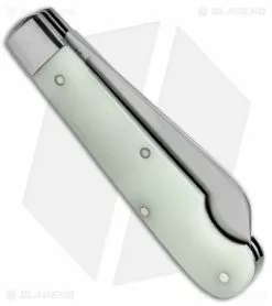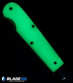 This Tidioute Cutlery Crown Lifter Boy’s Knife features a sheepsfoot blade and a bottle opener that doubles as a flat head screwdriver. The handle is fitted with acrylic “Nifebrite” glow-in-the-dark scales and a nickel silver bolster.