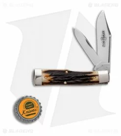 This Gunstock Buffalo Jack pocket knife sports a traditional 2 blade design and a sambar stag gunstock inspired handle. The GEC Buffalo Jack pocket knife includes a large clip point blade and a smaller pen style blade. Nickel silver bolsters and brass liners finish of the impressive Buffalo Jack design from GEC Northfield UN-X-LD.