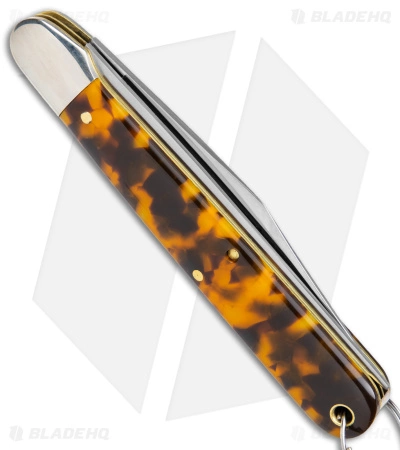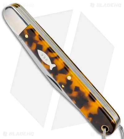 - Orange and brown Tortoise Shell Acrylic handle with a fish on it.