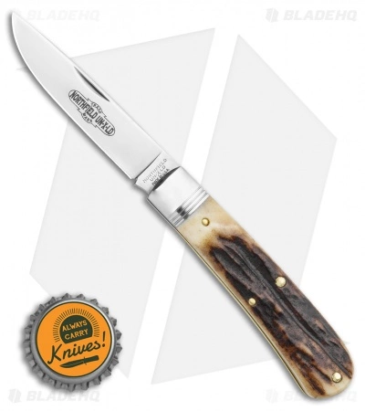 This Tidioute #74 Mustang from Great Eastern Cutlery has a Sambar Stag handle, and a drop point blade in a 1095 carbon steel.