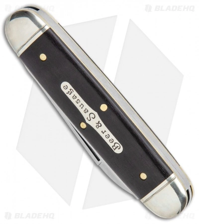 This Beer & Sausage knife has a Gabon Ebony handle.