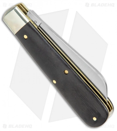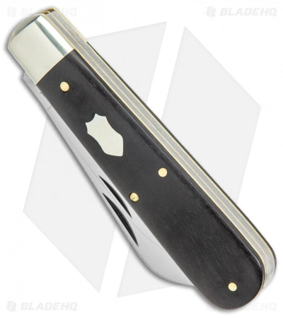 - “Well Done” Macassar ebony handle scales with nickel silver bolsters and shield.