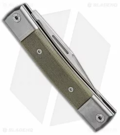 This Blade HQ Exclusive model of the LionSteel BestMan sports a satin clip point blade made from Bohler M390. The titanium handle has green micarta inlays with titanium bolsters.
