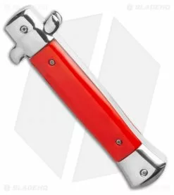 Pick up a unique and collectible design with the 9″ Italian Stiletto OTF automatic knife. This OTF model is built with a silver aluminum handle with red acrylic scales and a satin bayonet blade. It features classic Italian made craftsmanship and a dependable double-action OTF mechanism. Item includes a nylon sheath for secure belt carry.