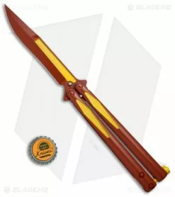 The latest generation of the Tachyon butterfly knife, the special edition Flash production Microtech Tachyon III, distinguishes itself from previous models with milled, single-piece channel construction handles, a spring latch, and a standard pocket clip. The blade showcases a non-sharpened swedge-ground tip and milled grooves with the Microtech logo, production date, and blade steel markings up front.