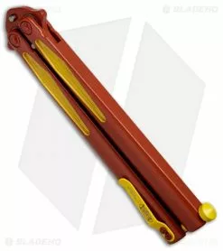 - Vibrant Red/yellow detailed finished clip point blade made from Bohler M390.