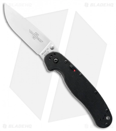 This knife is designed for comfort and performance with an index finger groove on the handle to keep your hand where it should be and jimping on the spine of the blade for controlled cutting. The handle features textured black G-10 scales with an open-built steel liner lock frame. The AUS-8 stainless steel drop point blade has a satin finish and a plain cutting edge. The RAT Model 1 is fully ambidextrous with dual thumb studs and a 4-way reversible pocket clip. The Ontario RAT Model 1 is a strong, high-quality knife at an unbelievable price!