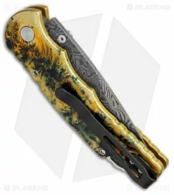 This TR-5 custom model has an orange splash aluminum handle featuring a Shaw Sterling Skull. It has a two-tone black back spacer/lanyard attachment, and a deep carry tip-up pocket clip. The blade is Damasteel “Vinland” Damascus outfitted with a thumb stud opener. The plunge lock enables safe use and provides solid lockup. Pro-Tech’s TR-5 is an impressive addition to their lineup and boasts their longstanding build-quality and performance.
