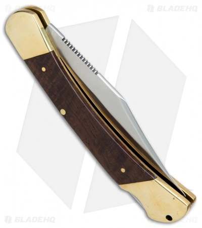 Made with German 440A stainless steel, the Puma SGB Warden is a great option for those looking for a traditional pocket knife for work, or hunting. German 440A stainless steel can take a fantastic edge with easy sharpening ability, while being highly corrosion resistant.Attractive Jacaranda wood scales are a deep, rich brown color with an obvious grain pattern. Brass bolsters, liners and pinned construction ensures the Puma SGB Warden will be a faithful companion on any of your cutting adventures.