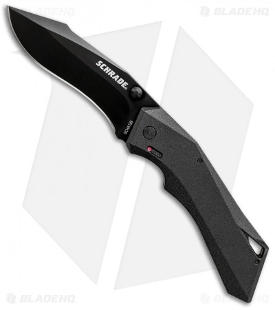 The Schrade Shiznit is a lightweight carry-friendly knife built with the MAGIC assisted opening mechanism for quick deployment by thumb stud or flipper. This model features a versatile recurve blade made from AUS-8 stainless steel with a black finish and plain cutting edge. Its black aluminum handle is contoured for comfort and excellent grip security. The Shiznit comes fitted with a deep carry pocket clip and a sliding safety lock.