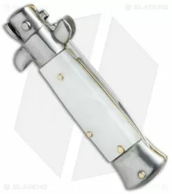 This 4.5″ Keychain Stiletto from SKM Italy comes in the classic style with a white acrylic handle and a stainless steel blade. SKM makes a variety of Italian stilettos featuring traditional designs at an affordable price. This 4.5″ model has a white pearlex handle with stainless steel bolsters. Brass pins add a classic finishing touch to the piece. The blade is flat ground with a swedge/false edge on the spine and a satin finish. Experience the affordable Italian quality of these authentic stilettos from SKM Italy.