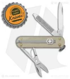 The traditional Victorinox Classic SD Swiss Army knife is…well…the classic Swiss Army Knife. Featuring six popular components, it is functional and versatile, and yet with a closed length of just 2.25″ it is compact enough to fit in your pocket. This everyday carry knife is the perfect size to keep on your keychain or slip into your pocket. This model has a mystical morning colored handle.